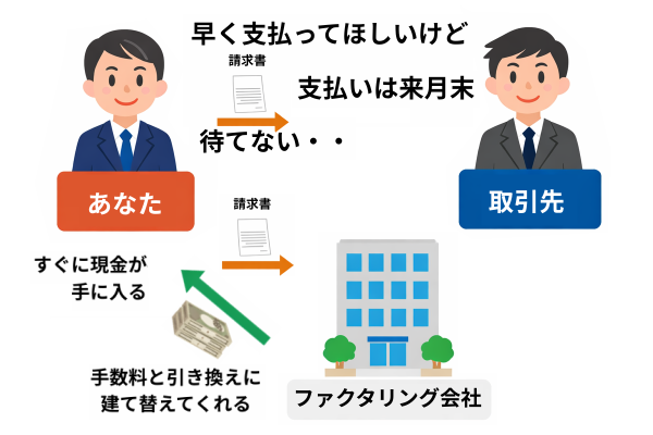 - これは「お金を借りる」のではなく、「持っている請求書を売る」行為です。